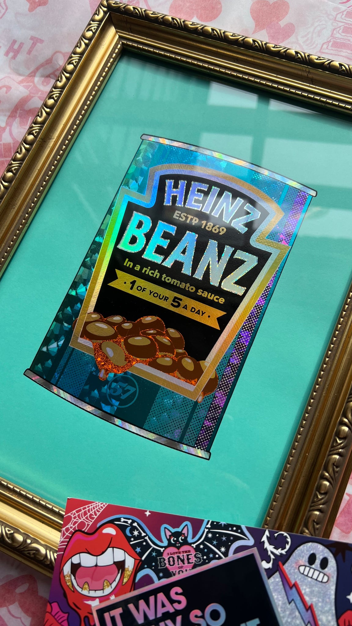 I use a special technique combining mirror, crackle, glitter and matt foils to build up detailing and make my prints utterly unique.