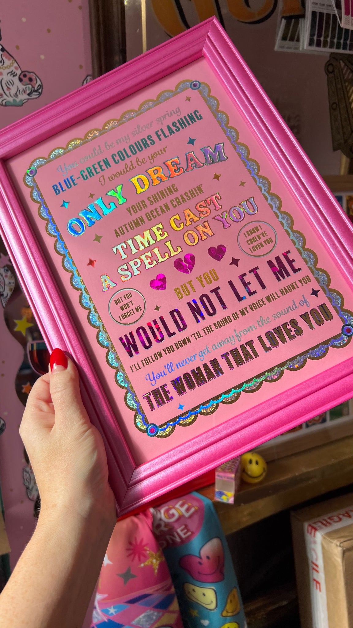 Frames listed and sold separately. Choose from a wide selection of styles, add to your order and I'll frame and wrap the piece in lovely Hotfoils printed tissue papers.