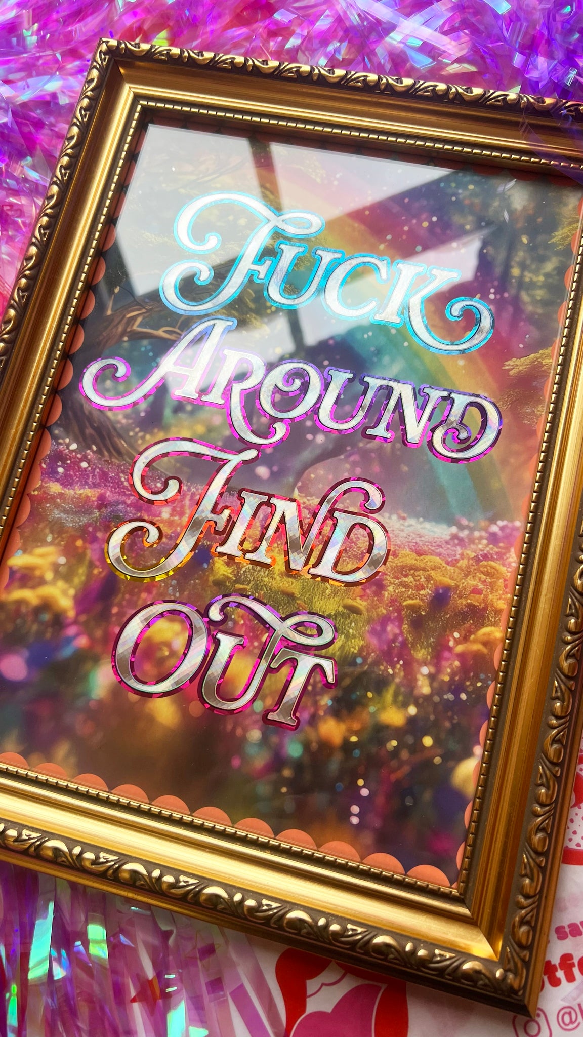 Frames listed and sold separately. Choose from a wide selection of styles, add to your order and I'll frame and wrap the piece in lovely Hotfoils printed tissue papers.