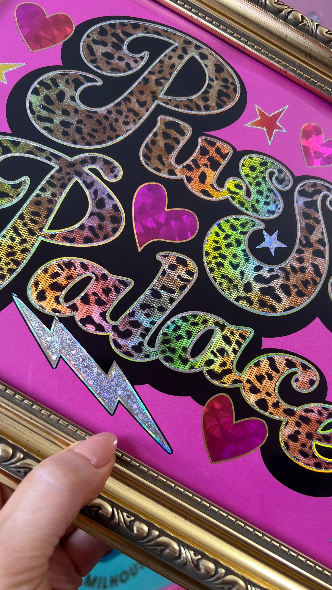 I use a special technique combining mirror, crackle, glitter and matt foils to build up detailing and make my prints utterly unique.